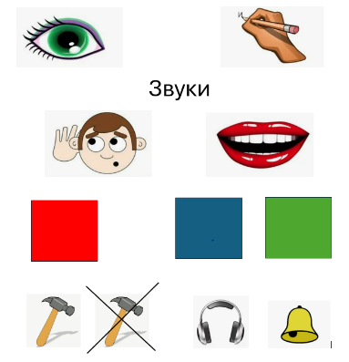 Давайте вспомним, что мы уже знаем про звуки? | Ответы детей (звуки) Ответы детей. Дети выходят и рассказывают. ( Звуки мы произносим и слышим; Звуки бывают гласные и согласные Гласные звуки бывают ударные и безударные; Согласные звуки бывают твёрдые и мягкие, звонкие и глухие, парные и непарные) Звуки обозначаются буквой) Дети дописывают буквы на карточках. Дети сверяются с образцом. Ответы детей (они гласные) Дети называют звуки. | Ответы детей (выкладывают на доске слово звуки) Дети ОВЗ составляют кластер, учитель-логопед контролирует ход выполнения работы. Дети дописывают буквы на карточках. | Составляют из картинок кластер: