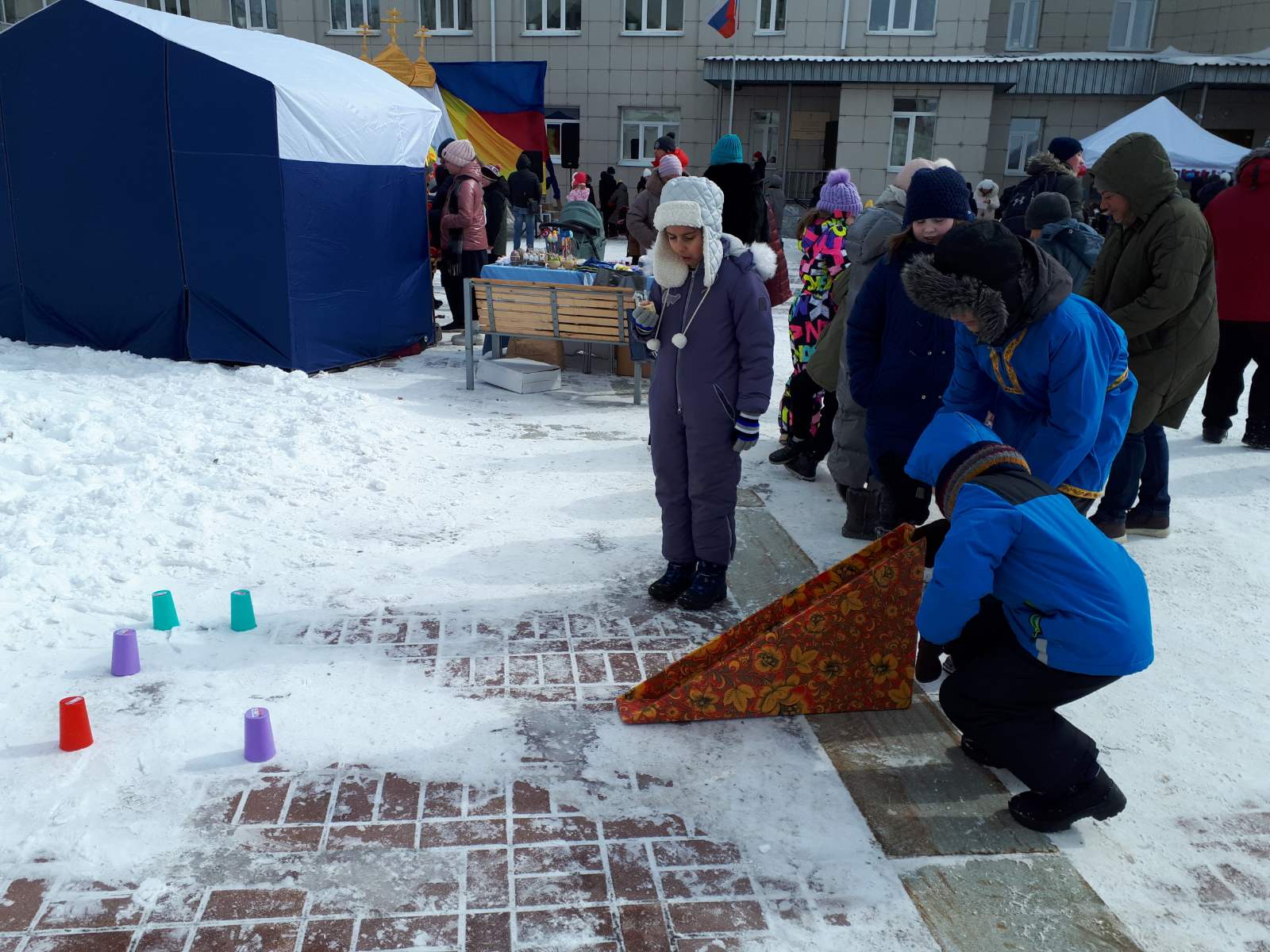 Оборудование: горка для катания яиц, предметы (призы), которые нужно сбить, 2 резиновых яйца.