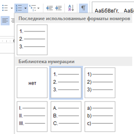 Нумерованный список: