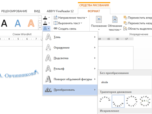 Практическое занятие № 6. Панель инструментов WordArt