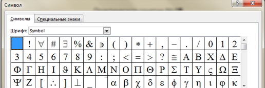 Практическое занятие № 8. Символы. Математические формулы