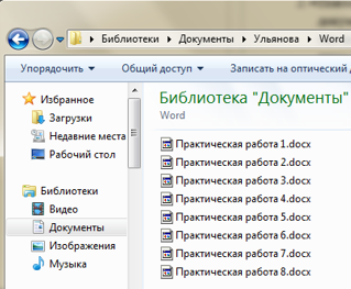 В процессе выполнения практических работ Вы сохраняли все работы в папке (Ваша фамилия) внутри папки Мои документы. Открывайте по очереди Ваши практические работы, выделяйте полностью документы: