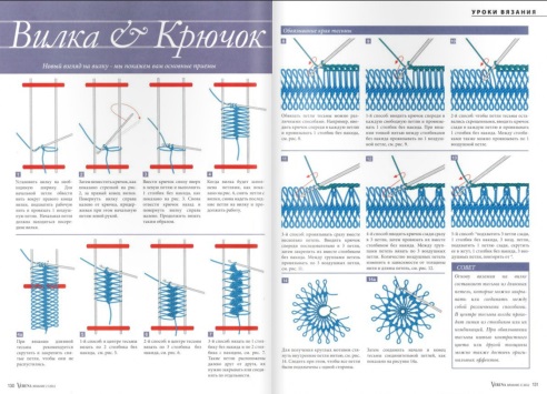 С помощью вилки можно создавать разнообразные оригинальные изделия. Вы можете связать шапочку с шарфом или же шаль очень быстро и легко.