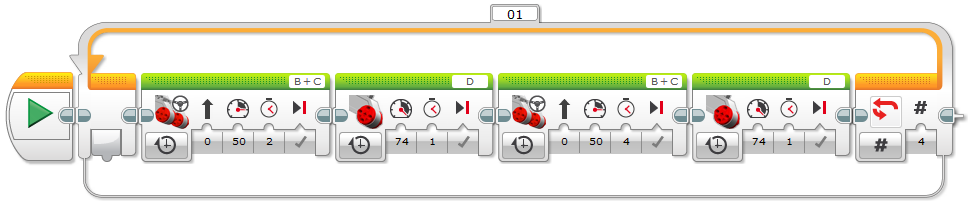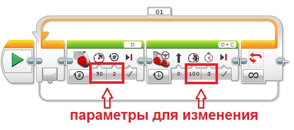 Попробуем в специальной программе составить циклический алгоритм, который они будут исполнять с помощью вот таких команд: