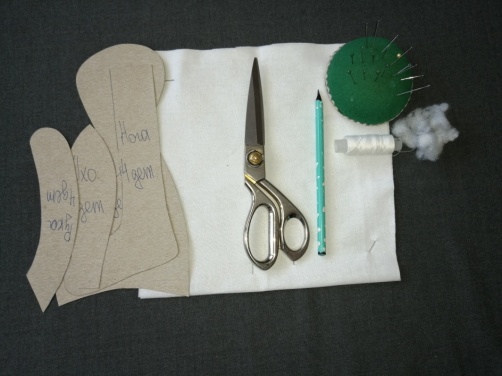1) Подготовить все необходимое: ткань, нитки, выкройка, наполнитель, карандаш или мыло, машинка бытовая, утюг, ножницы, иглы. |