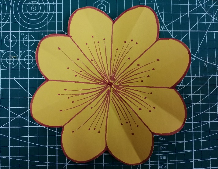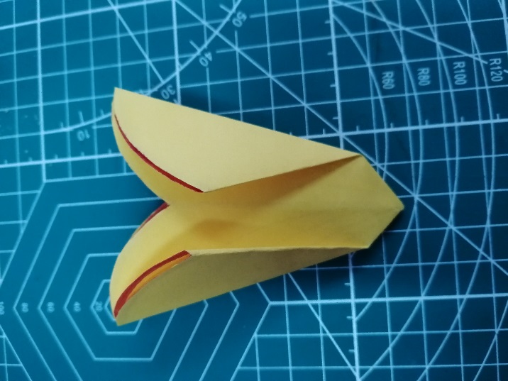 Вырезаем его и намечаем линии. Базовая форма «двойной треугольник».