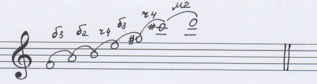 То же с указанием начального звука. Определяются интервалы и называются звуки: