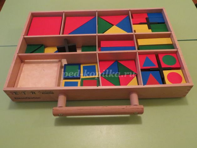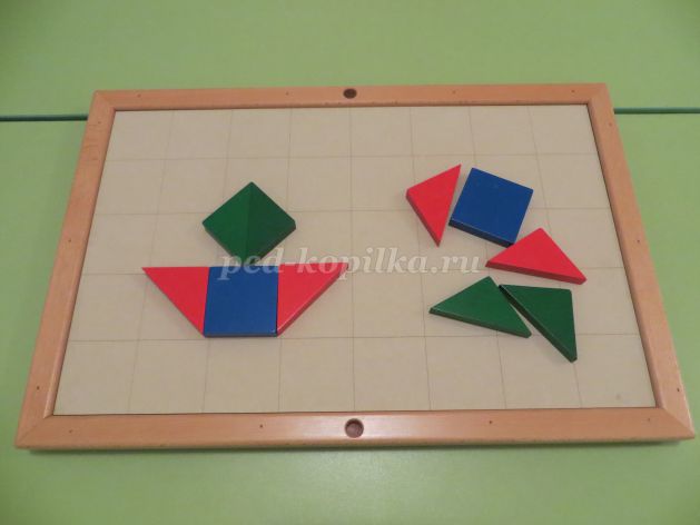 Деревянные рамки для составления квадратов из разных фигур.