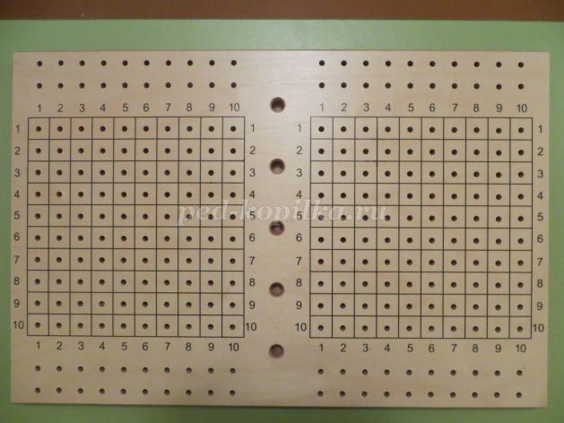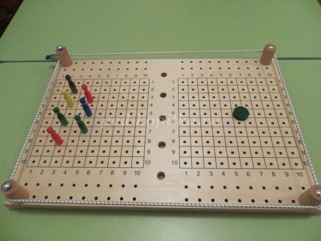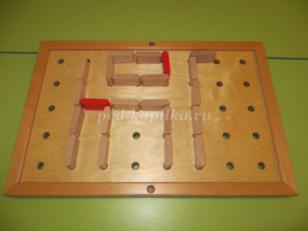 Необходимо выставить штырьки с головками в отверстия от 1 до 10, надевая штырьки друг на друга. Пересчитать
