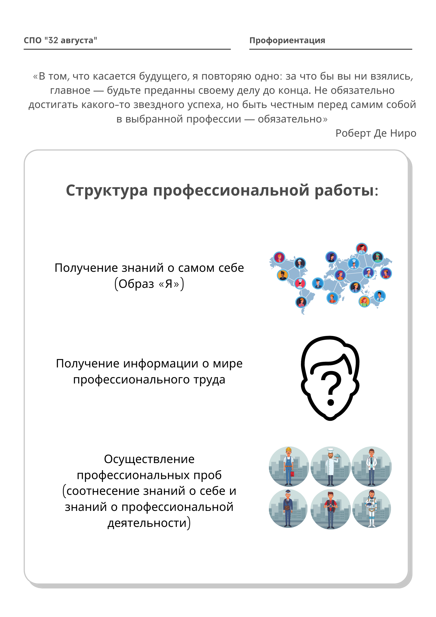 Выбор профессии. На этом этапе определяется желаемый вид занятий.