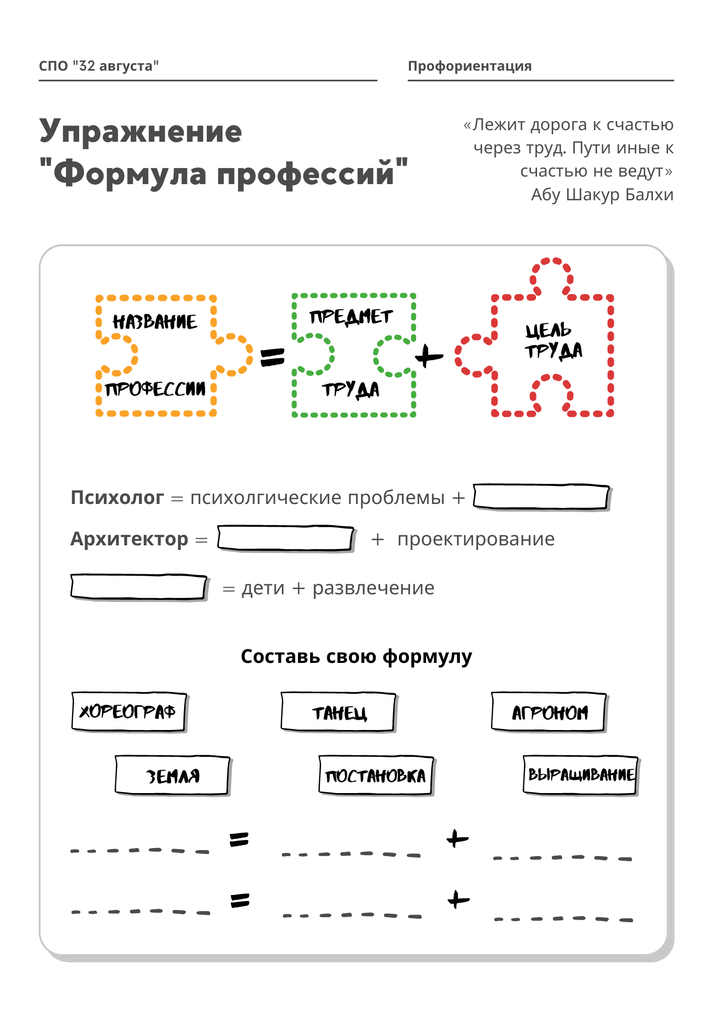 Ведущий 1: Первое упражнение, с которым мы вас познакомим - «Формула профессий».