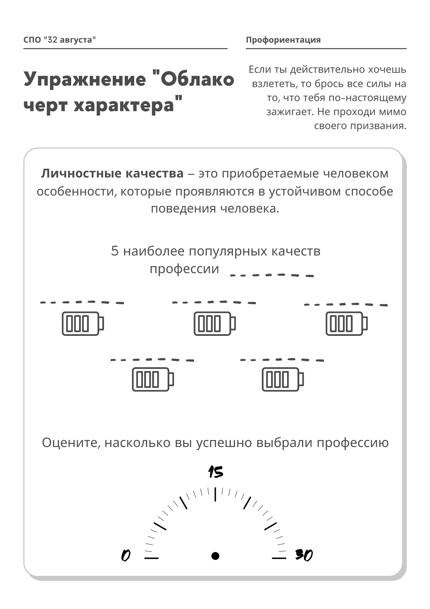 Анализ соответствия желаемой профессии и необходимых качеств. Нужно оценить свои личностные качества и физические возможности. Многие специальности предполагают идеальное состояние здоровья или определенный уровень физиологических показателей.