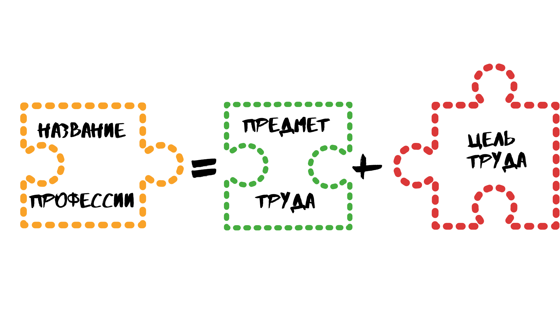 Ведущий 2: Профессия состоит из предметов и целей труда. Предметы труда – это то, с чем работает человек данной профессии. Цели труда – это то, ради чего работает человек данной профессии. Получаем формулу: профессия = предмет труда + цель труда (демонстрируя формулу на доске) (см. приложение №4).