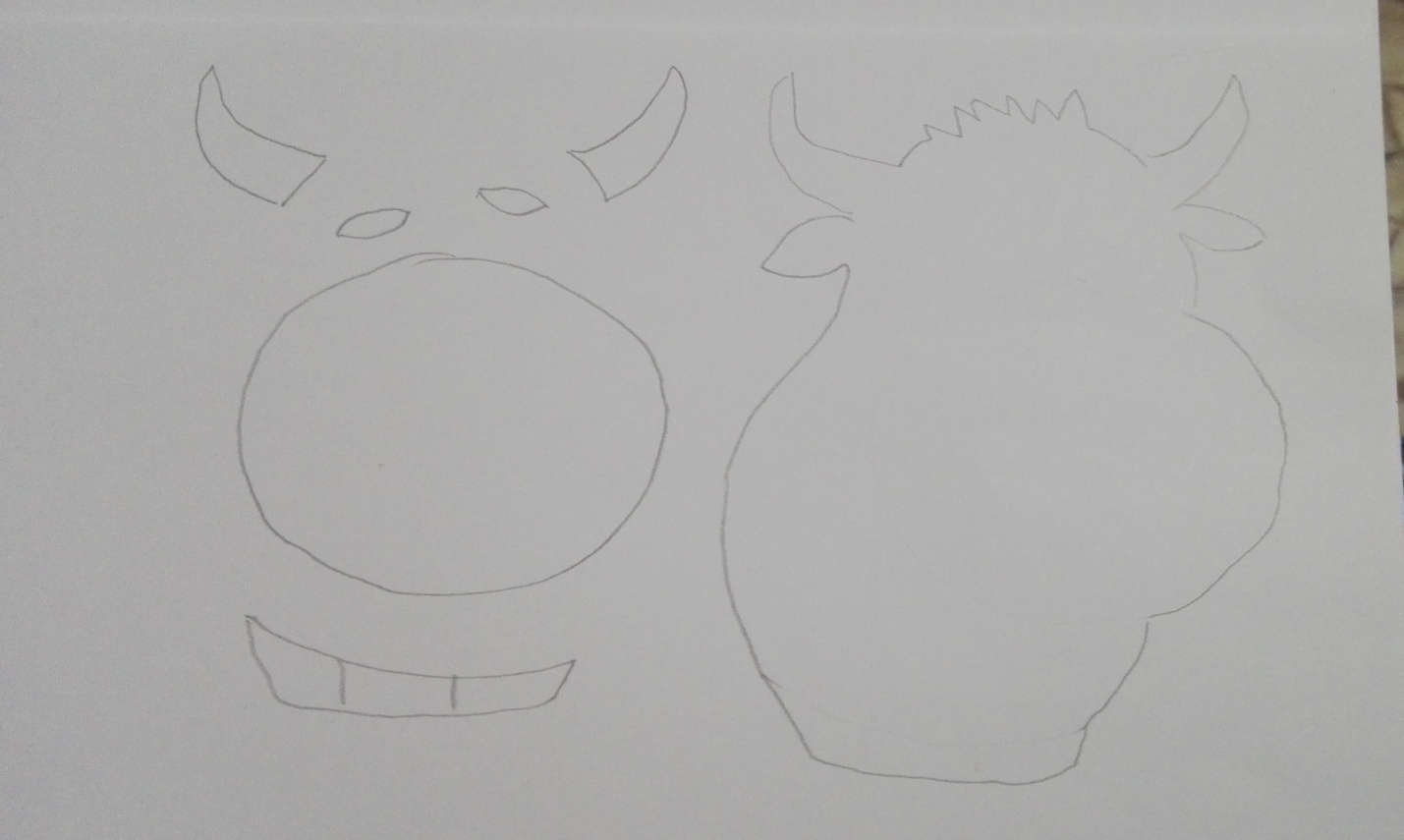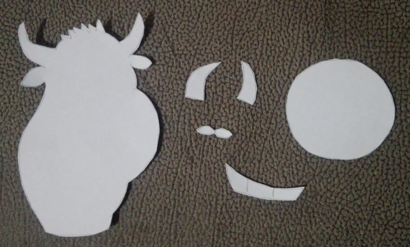 1. Основой для магнита является заготовка (1) нарисованная на плотном картоне, также нарисуйте рога, вставки в ушки, мордочка, копыта.
