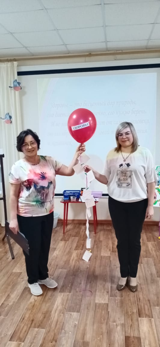 (открывает крышку короба, из которого вылетает вверх гелевый шарик с надписью «Здоровье»)