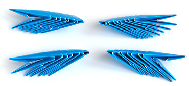 Крылья можно сделать плоскими, вставляя 2 уголка в 2 кармана. Для крыльев возьми 4 раза по 6 модулей.