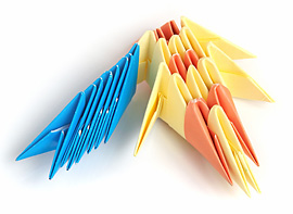 Модульное оригами даёт много возможностей для творчества. Фигуры или композиции создают из маленьких модулей – свёрнутых кусочков бумаги. Для этого годятся даже старые журналы.