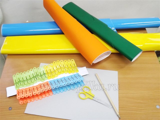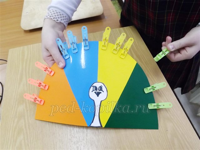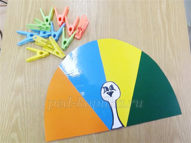 7. Берем разноцветные прищепки и зацепляем их на том цветном секторе, каким цветом прищепка.