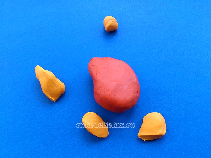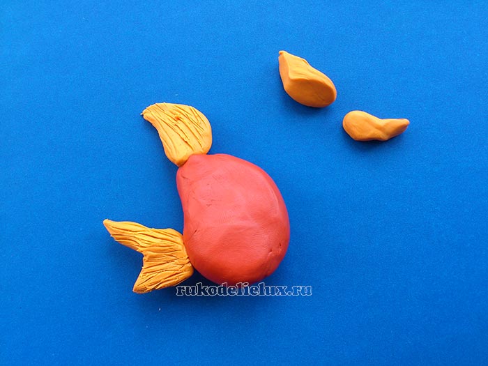 1. Оранжевый пластилин двух оттенков для лепки туловища и плавников;
