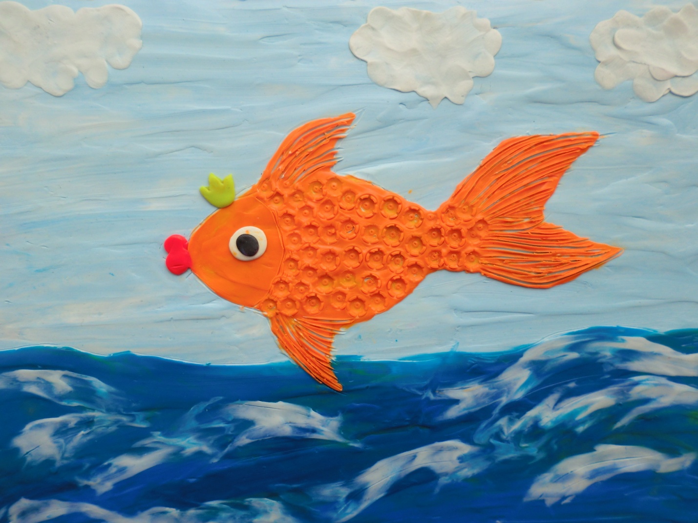 На этом занятии мы будем лепить Золотую рыбку, но она немного будет отличаться от рыбки из сказки А.С.Пушкина "Сказка о золотой рыбке".