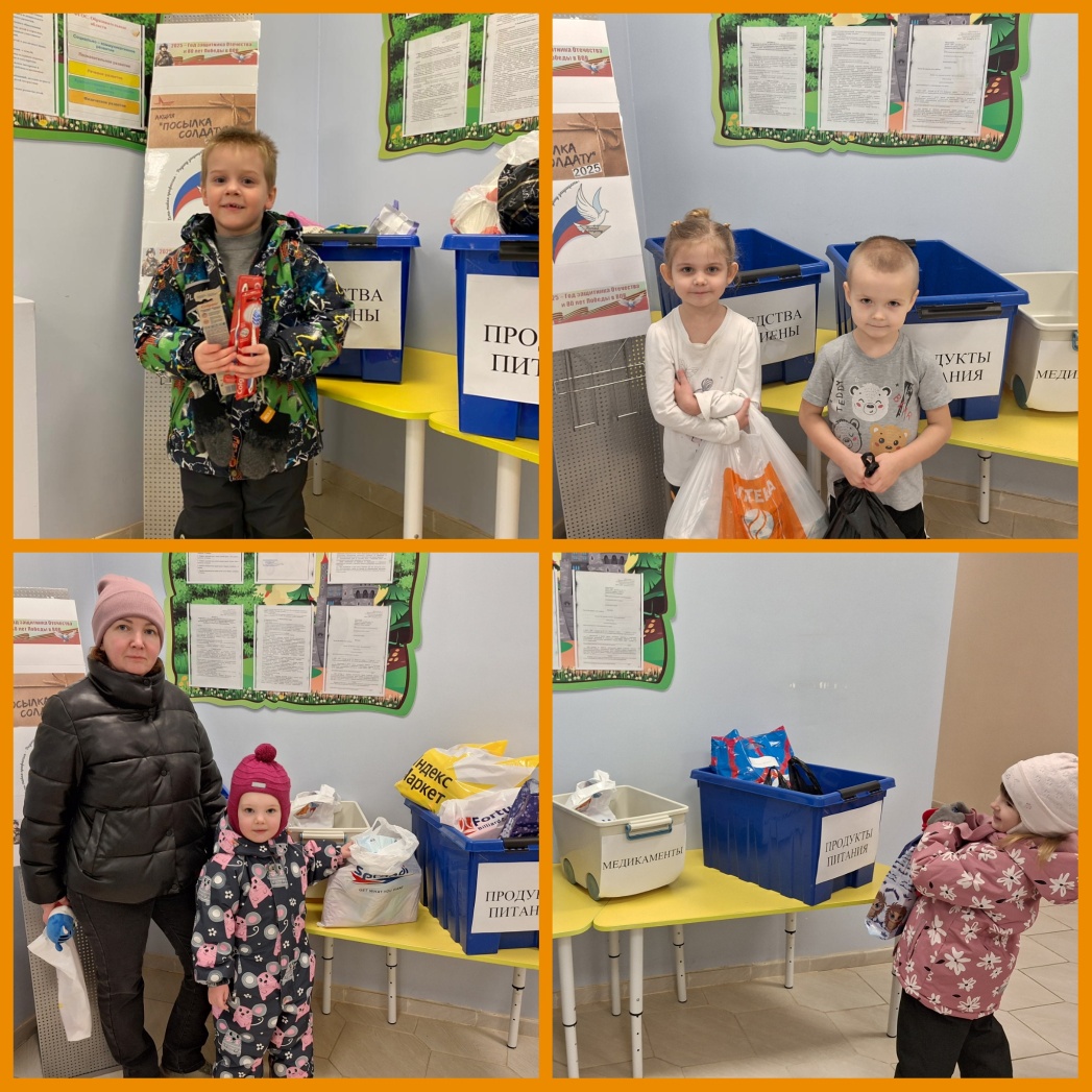 Благотворительный акции. Такая форма совместной деятельности имеет большое воспитательное значение для детей, которые учатся не только принимать подарки, но и делать их. Родители тоже не останутся равнодушными, видя как их ребёнок с увлечением играет с друзьями в детском саду в давно заброшенную дома игру, а любимая книга стала еще интереснее и звучит по – новому в кругу друзей. А это большой труд, воспитания человеческой души. Например, совместная акция «Водорослям крышка» и сбор гуманитарной помощи участникам СВО «Посылка солдату»