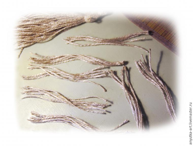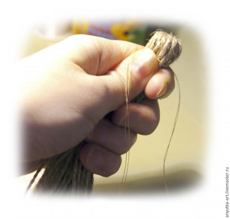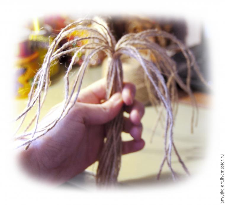 7. Для гривы готовим семь пучков шпагата, примерно 15 см длиной.