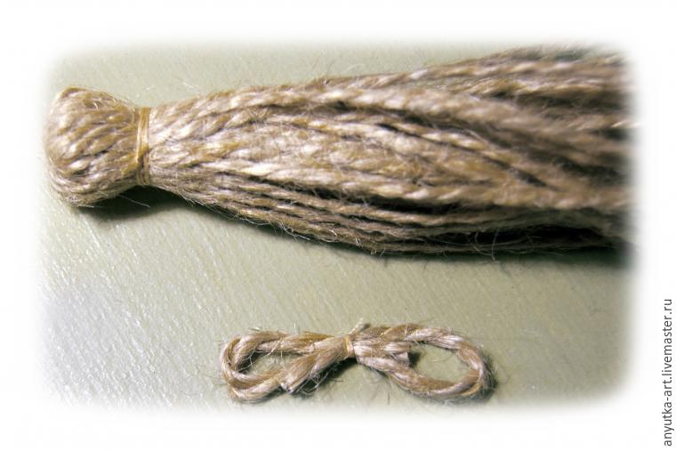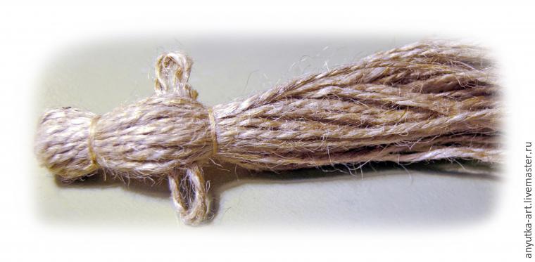 5. Делаем из короткого отрезка шпагата восьмерку и перевязываем посередине.