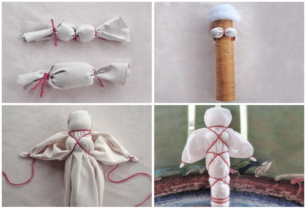 Представьте себе быт наших предков – ни телевизоров с сериалами, ни Интернета, ни мобильных телефонов, ни офисов, ни аэропортов – вся жизнь строилась на циклах природы, сливаясь в одно целое с календарно-климатическими условиями протекания сельскохозяйственной жизнедеятельности. К различным событиям, таким как новый урожай, уход зимы и другим жизненно-важным этапам года делались обрядовые куколки, и каждая из них наполнялась своим смыслом и имела своё личное предназначение – какая-то куколка сжигалась как символ очищения, а какая-то наоборот, наполнялась крупами и ставилась на видное место, чтоб в дом достаток привлекать. Куколки бывали самые разные, не только из ткани – и из глины делались, и из соломы, даже из золы.