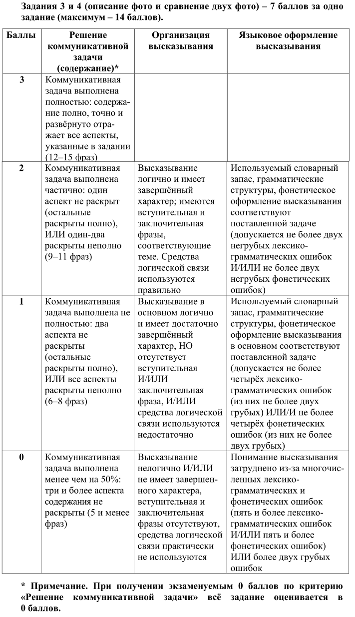 3. | Описание фото (1 на выбор из 3) | 1,5 мин. | 2 мин. | 7 баллов |