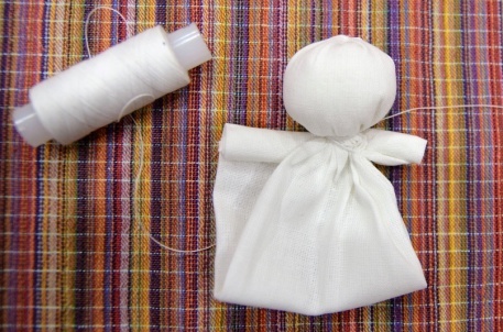 При изготовлении поделки не должны использоваться иглы, ножницы и другие колющие и режущие предметы. Считалось, что режа или прокалывая ткань, кукла теряет свою магическую силу. Крест – сакральный символ, который наделяет магический предмет определенной силой.