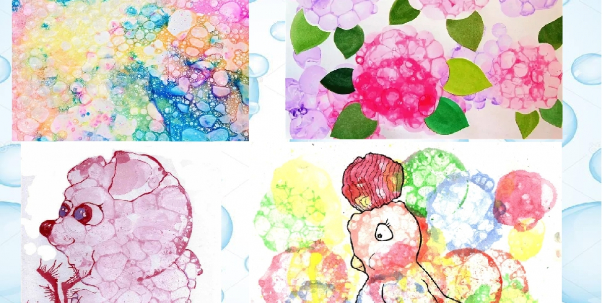 Когда пена поднялась, берем плотную бумагу и прислоняем ее к мыльной пене. Таким образом, можно одним листом бумаги пройтись по всем цветам. Для творчества лучше брать плотную бумагу.