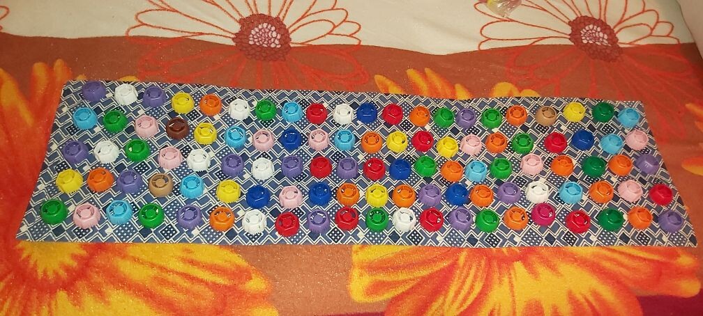 -крышки пластиковые от детского питания; - основа из плотной ткани.