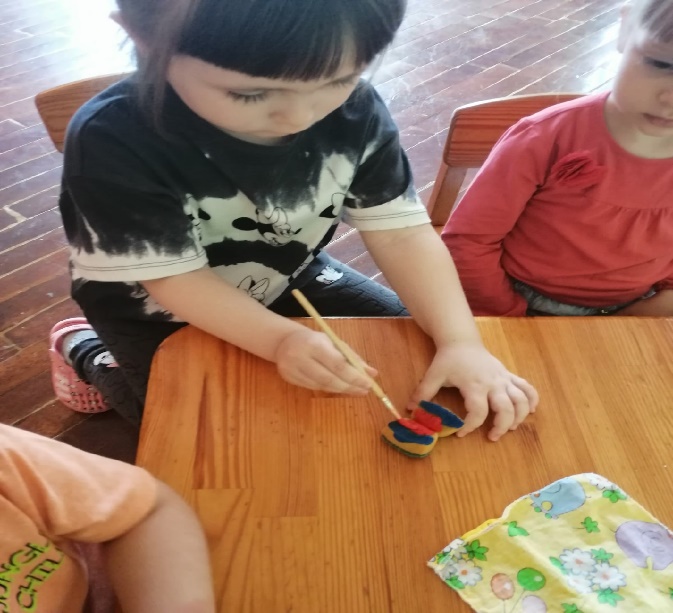 В. У меня есть идея! Давайте на нашей полянке нарисуем бабочек ,что бы нашей гостьи было с кем поиграть?