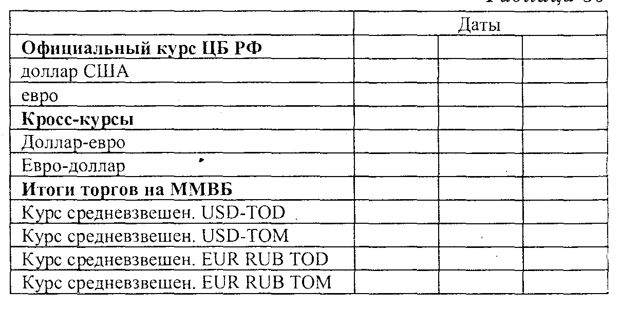 1. Составить сводную таблицу (см. табл. 1) по валютным курсам и кросс-курсам (рубль, евро, доллар).