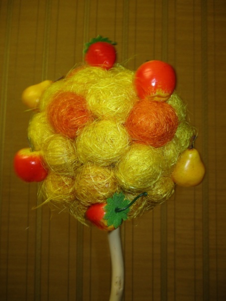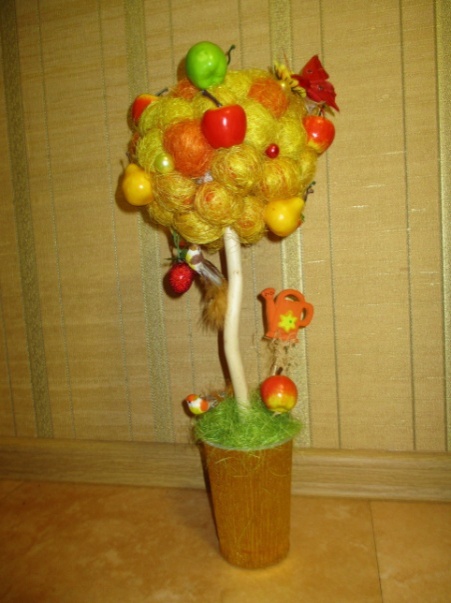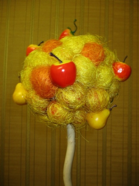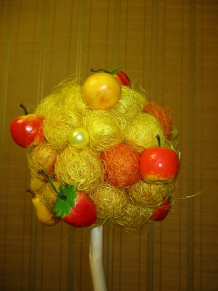 Педагог: Вам хотелось бы красиво и оригинально украсить свой дом? Думаю, что да! Тогда сегодня я предлагаю изготовить своими руками чудесное декоративное дерево – фруктовый топиарий, представляющий собой фантазийный причудливый шар. Кстати, топиарии часто называют деревом счастья. Но не подумайте, что сделать собственный топиарий сложно! Вовсе нет! Каждому под силу «вырастить» свое фруктовое дерево.