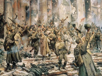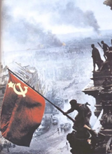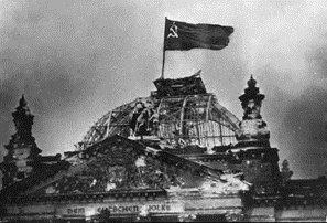2 ведущий: С того времени, как 30 апреля 45 г. над разгромленным берлинским Рейхстагом взвился советский кумачовый флаг.
