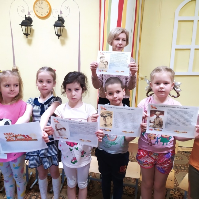 При активном участии родителей и воспитанников и воспитателей в холле Детского сада оформлена Стена памяти с фотографиями воевавших родственников. Дети с большой гордостью рассказывали о подвигах своих прадедов.