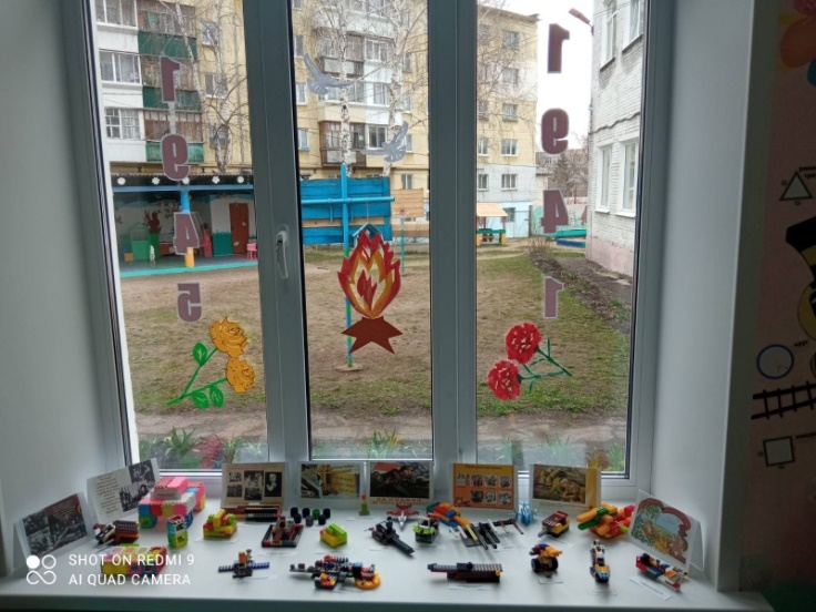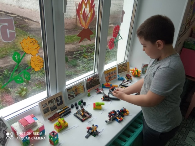 Была организована выставка поделок из лего-коструктора на тему «Великая Отечественная война глазами современных детей». Дети, вдохновленные полученной информацией, смастерили большое количество поделок из лего-конструктоора отражающих их восприятие о войне и памяти о ней.