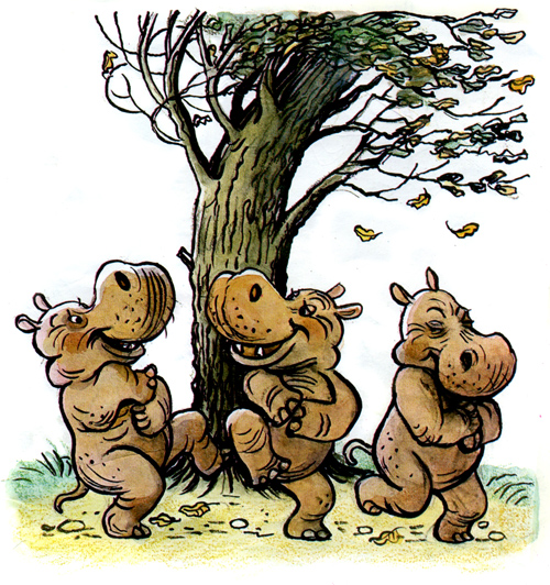 И бежит Айболит к бегемотикам, и хлопает их по … (животикам).
