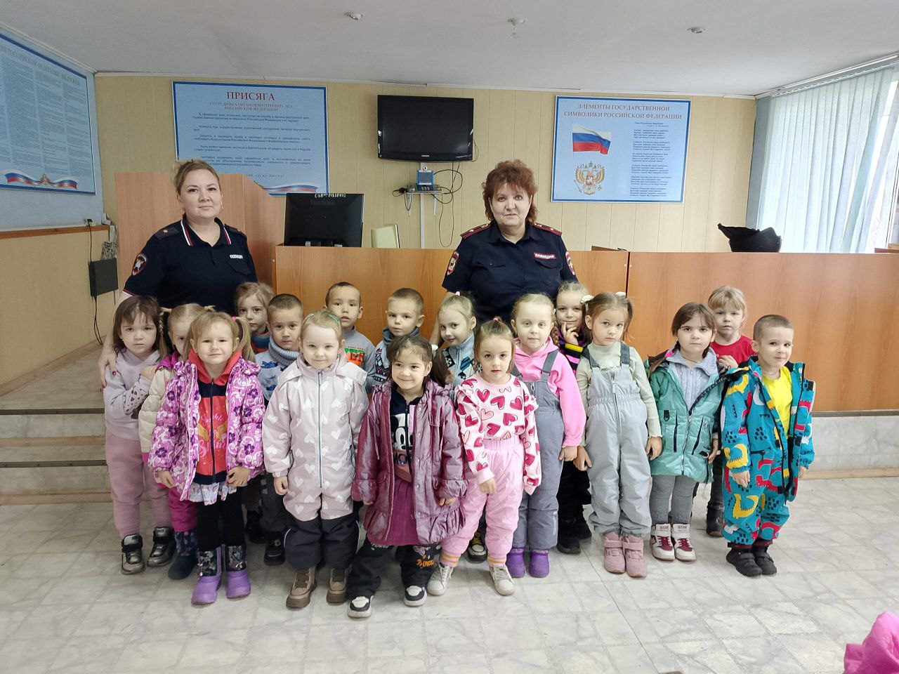 Сотрудник полиции: Здравствуйте, ребята! Меня зовут Галина Александровна, я работаю в полиции. Сегодня я покажу вам, как мы работаем, и расскажу, чем занимаемся. Вы готовы? Тогда пойдемте со мной!