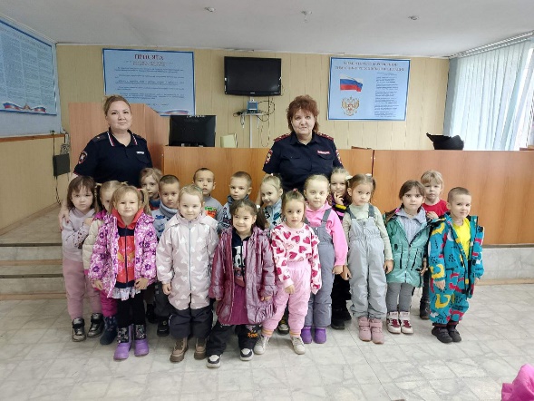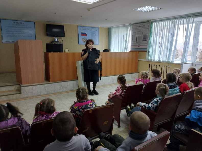 Воспитатель: Ребята, мы с вами пришли в полицию. Это место, где работают люди, которые следят за порядком и помогают нам, если что-то случилось. Сейчас нас встретит сотрудник полиции, который расскажет, чем здесь занимаются.