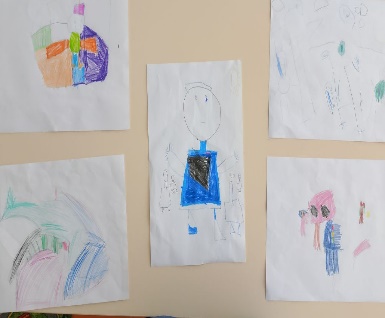 А теперь давайте нарисуем, что вы запомнили. (Дети рисуют полицейских или другие элементы экскурсии.)