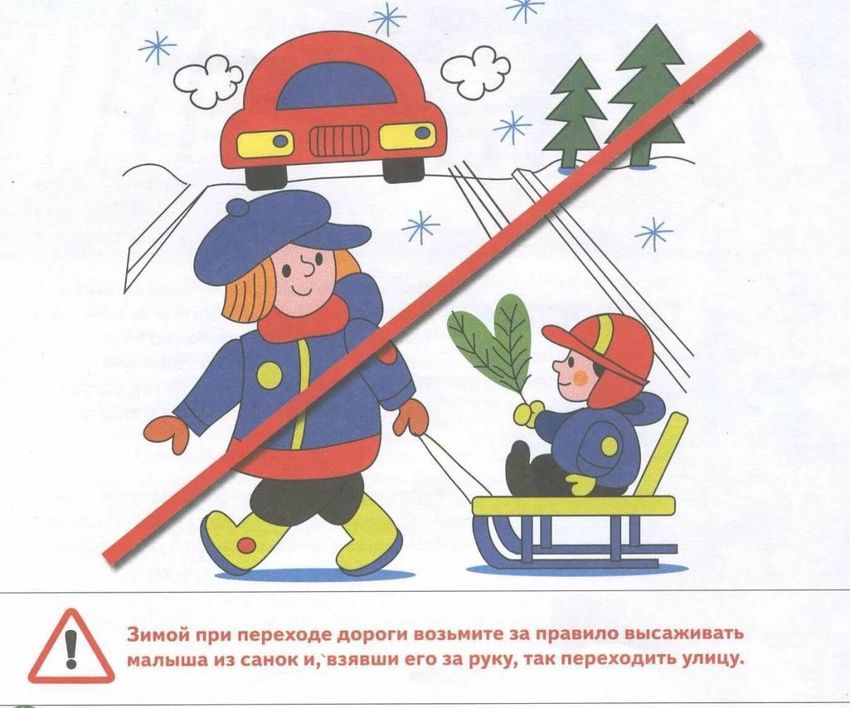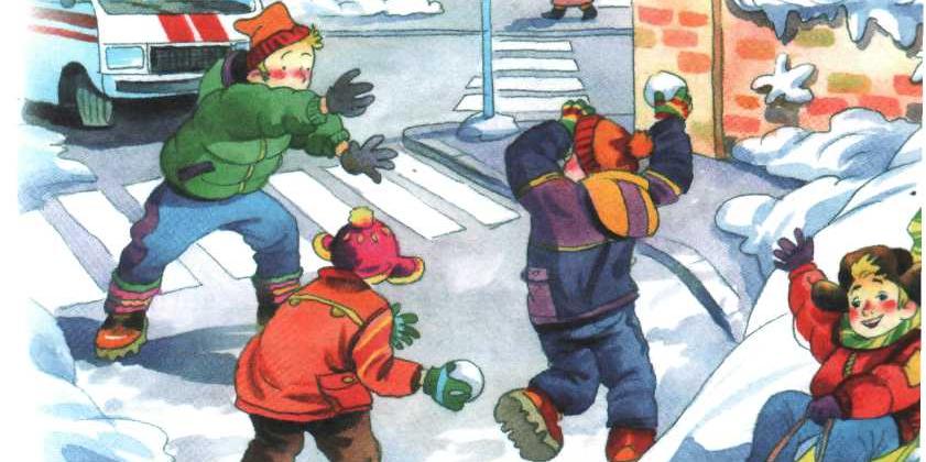 Нельзя играть, кататься на лыжах, санках и коньках вблизи дорог.