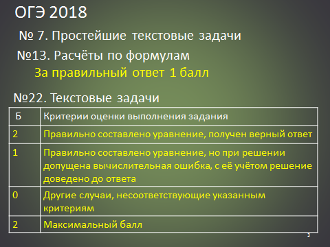 Информация о месте текстовых задач в тестах ОГЭ по математике, критериях оценки.