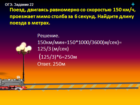 (ОГЭ. Прототип задания 22). Поезд, двигаясь равномерно со скоростью