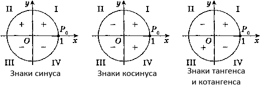 наки синуса, косинуса, тангенса и котангенса.