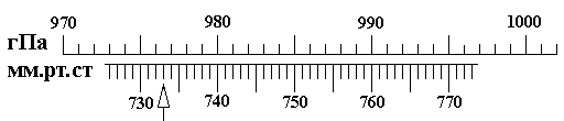 9Определить цену деления барометра, изображенного на рисунке в мм рт. ст.