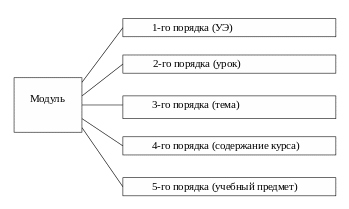 Любой модульный урок состоит из учебных элементов (УЭ). Именно от качественного содержания учебных элементов — модулей первого порядка — во многом зависит успех применения модульных программ.