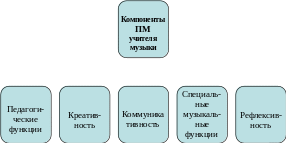2. Функции современного учителя музыки представляют собой целый комплекс разнообразных способностей: педагогических и специальных. Результативность деятельности учителя музыки зависит от высокого уровня педагогических способностей и подчинения им других специальных способностей. Показателем профессионализма в педагогической деятельности является - овладение и сформированность системой профессионально значимых умений, что в свою очередь является необходимым условием для становления профессионального мастерства. Значительную роль играет творческая личность учителя музыки.