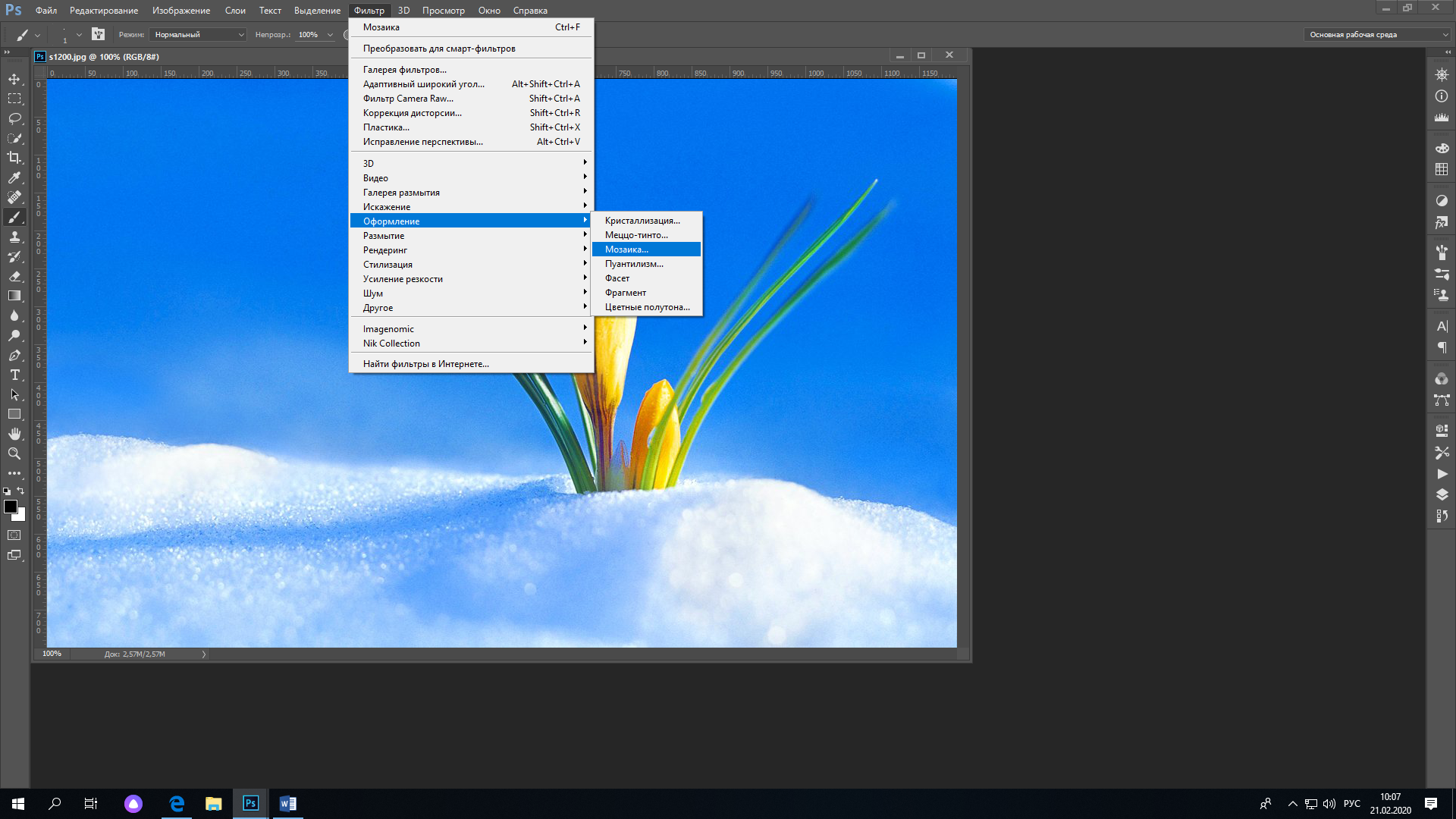 2. Щелкните ФИЛЬТР> ОФОРМЛЕНИЕ > МОЗАИКА